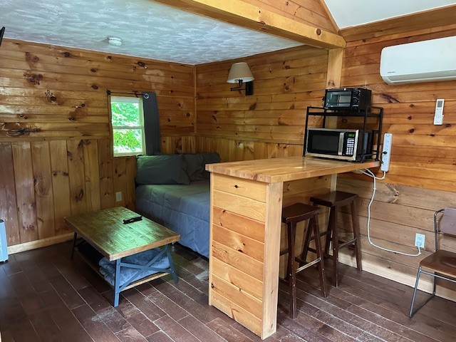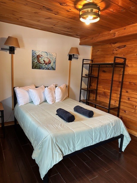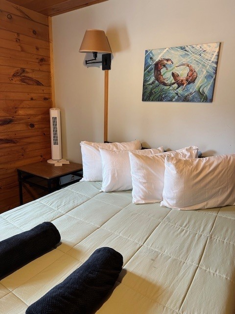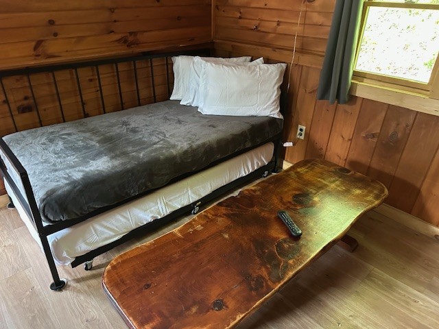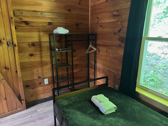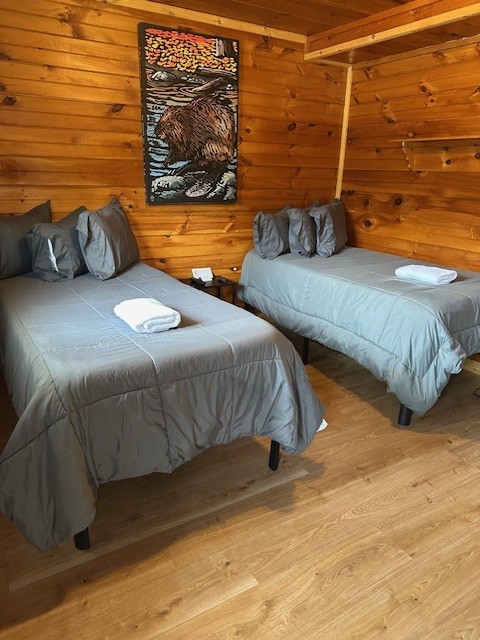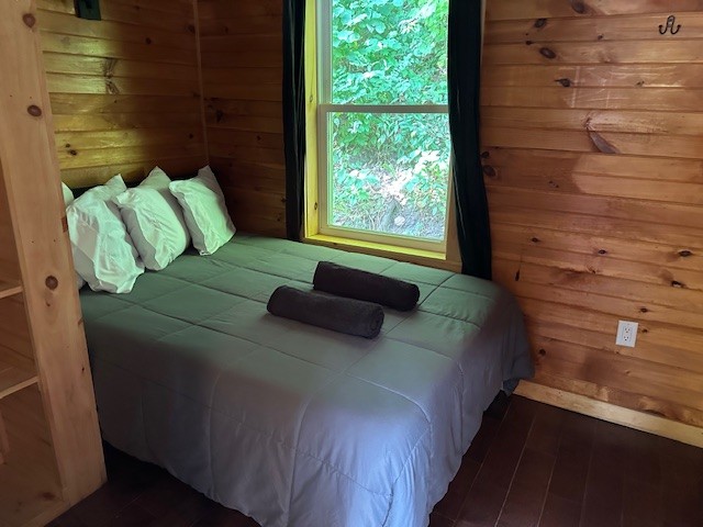 Overlooking the Barton River and our seasonal pool, this cabin sleeps 4. There is a full bed in one room, a twin trundle day bed in another room, and seating in the small living area. This cabin comes equipped with a refrigerator, microwave, coffee maker, toaster oven, hot plate, dishes, and kitchen sink. Outside we have charcoal grills and picnic tables seasonally.
